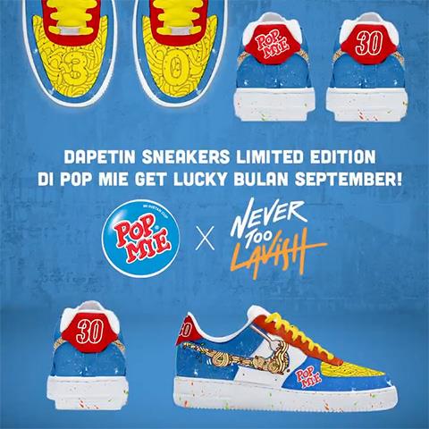 Buat lo yang udah jadiin Pop Mie pegangan seru selama 30 tahun ini, ada 30 sneakers limited edition Pop Mie X Never Too Lavish yang bisa lo bawa pulang di Pop Mie Get Lucky!